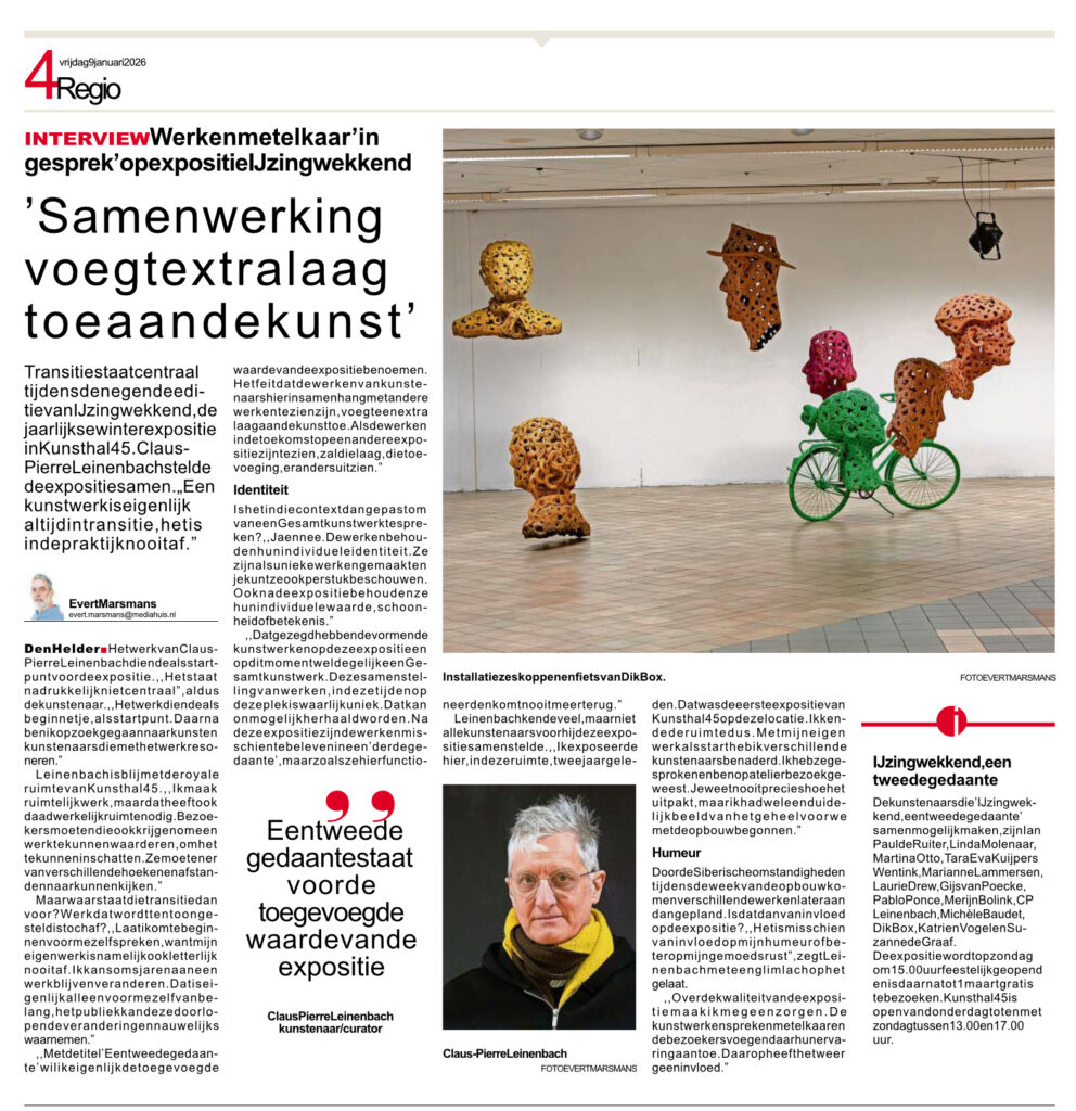 Groepsexpositie IJzingwekkend – een tweede gedaante, te zien van 11 januari t/m 1 maart 2026 bij Kunstruimte 45 in Den Helder.